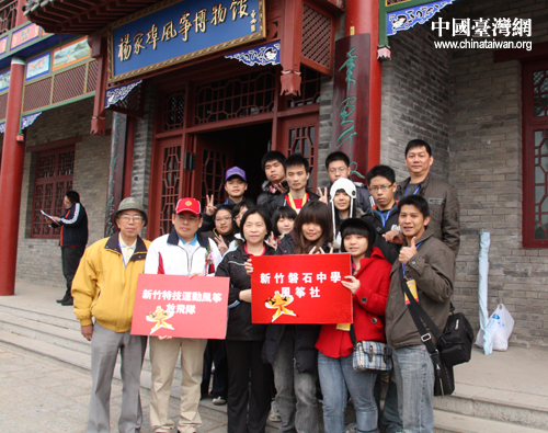 新竹市磐石中學的師生們在楊家埠風箏博物館前合影留念。(中國臺灣網 楊永青 攝)