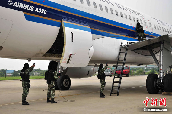 9月12日下午,廣州白云機場亞運安保力量重裝集結,舉行大規模的反恐綜合演練。中新社發 云軒 攝
