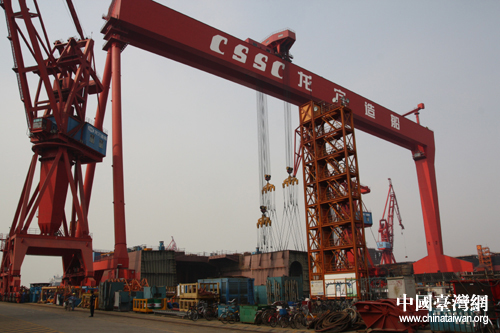 龍穴造船基地的龍門吊,承重力達600噸,并可實現多臺自由拼裝組合(中國臺灣網 趙輝 攝)
