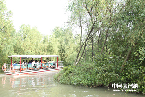 媒體行的記者們坐船參訪南沙濕地公園(中國臺灣網 趙輝 攝)