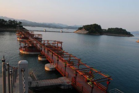 湖上的幸運橋目前是國內跨度最大的水上浮橋,總長230米。橋上采用無土栽培技術,偏植瓜果花草和水生植物,橋身兩側噴泉抽取千島湖深層恒溫湖水,在橋身上空交錯排列形成“秀水走廊”,也是橋上的天然空調。