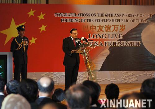 資料圖片:2009年10月3日,在巴基斯坦首都伊斯蘭堡總統府,巴基斯坦總統扎爾達里在中國國慶招待會上講話。新華社記者李敬臣攝