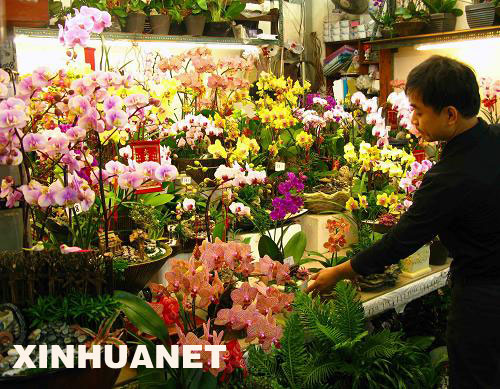 1月22日,臺北市民在內湖花卉批發市場選購花卉。從1月21日到25日大年除夕,臺北內湖花卉批發市場每天24小時營業,推出數千種花卉供市民選擇。新華社記者王妍攝