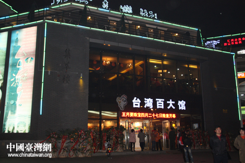 臺(tái)灣百大館座落于北京臺(tái)灣街核心地段,營業(yè)面積1700平方米。百大館的口號(hào)是:“臺(tái)灣精選、親切服務(wù)、安心購物、文化體驗(yàn)”。這也是在首都第一家以臺(tái)灣小食品、工藝品、水果、飾品為主的展賣館。