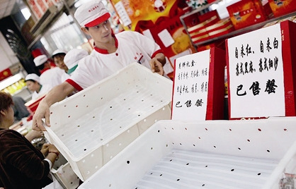 宮頤府、香港榮華等品牌,在超市的貨品均已不全。一些之前選好禮盒、現在來買的顧客只能敗興而歸或選擇他品。