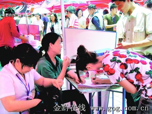 “七一”期間,六盤水市在中心城區的人民廣場開展大型招聘活動,上萬青年與上百家用人單位雙向交流、選擇,用人單位多數是賓館酒店、網絡等服務型民營企業和一些中介機構,這次招聘活動提供2000個崗位供求職者選擇。