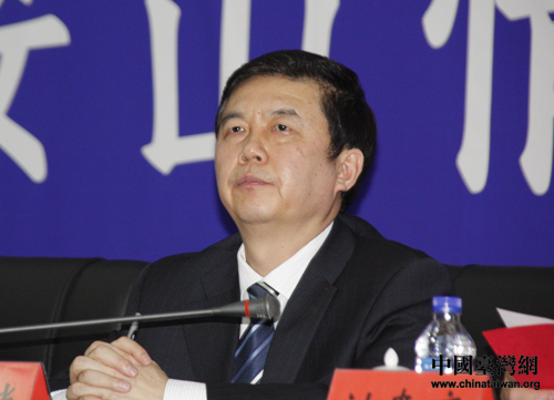 鞍山市委副書記李宇光向媒體介紹當(dāng)?shù)匕l(fā)展?fàn)顩r (中國臺灣網(wǎng) 孫金誠 攝)