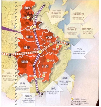 中部六省過去受限于交通設(shè)施的不足,致使在經(jīng)濟(jì)發(fā)展上處于中段班的位置。但透過四兆人民幣的擴(kuò)大內(nèi)需方案,一次性地將交通基礎(chǔ)設(shè)施布建完成后,未來將與沿海地區(qū)形成一個(gè)4小時(shí)的經(jīng)濟(jì)圈與生活圈。透過擴(kuò)大內(nèi)需方案改善基礎(chǔ)建設(shè)與騰籠換鳥政策的一拉一推,中部六省吸引外人投資的誘因大增,且將有效釋放農(nóng)村地區(qū)的勞動(dòng)力與資產(chǎn)收入,進(jìn)而刺激內(nèi)需市場(chǎng)的消費(fèi)力道,成為大陸經(jīng)濟(jì)成長(zhǎng)的新動(dòng)能。面對(duì)此一全新情勢(shì),兩岸在此一地區(qū)的經(jīng)貿(mào)合作,勢(shì)必要朝向全新的思維模