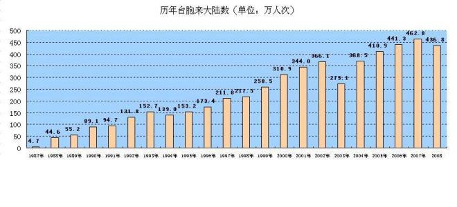 圖2:歷年臺(tái)灣人民赴大陸人數(shù)