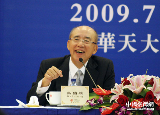 7月12日下午,中國國民黨主席吳伯雄在第五屆兩岸經(jīng)貿(mào)文化論壇閉幕后召開記者會。(中國臺灣網(wǎng) 鐘寶華 攝)