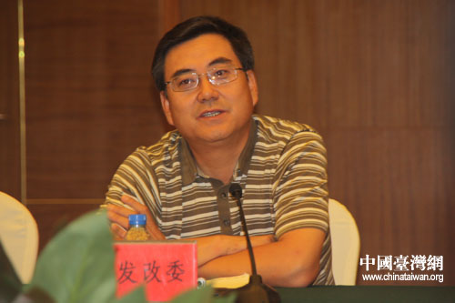 鄂爾多斯市發展和改革委員會副主任張占霖在座談會上答記者問(中國臺灣網 王文英 攝)