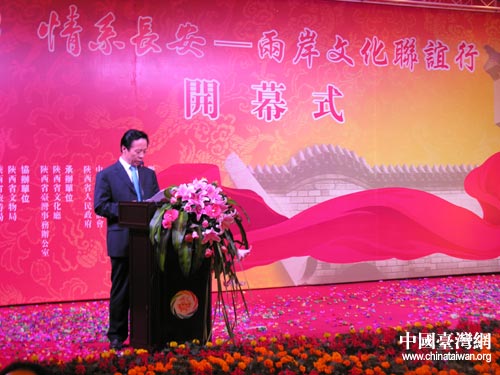 陜西省副省長鄭小明在開幕式上指出,陜西是中華民族和華夏文明的重要發祥地,西安是古代絲綢之路的起點,世界著名的古都和歷史文化名城,近年來的陜臺間文化交流活動十分活躍,秦始皇兵馬俑展、陜西文物精華展、漢陽陵文物展、法門寺佛指舍利赴臺供奉等一系列活動,加深了兩岸同胞間的了解,增進了同胞情誼。他代表陜西3780萬人民熱情歡迎來自海峽兩岸的文化界嘉賓。