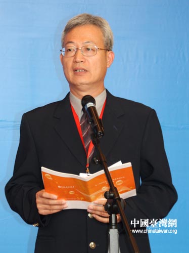 吉林省長春市寬城區(qū)教育局副局長周紅發(fā)表感言。(中國臺灣網(wǎng) 董潔 攝)