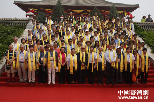 情系燕趙——兩岸文化聯誼行的全體嘉賓在祭拜中華民族三祖后合影(中國臺灣網 蕪同 攝)