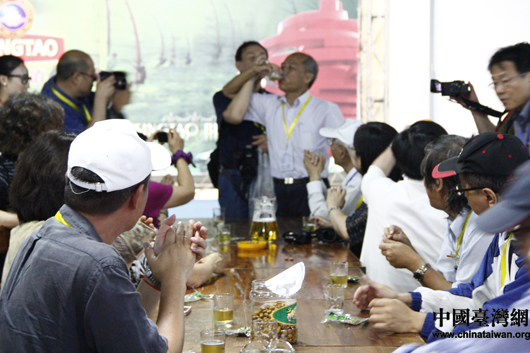 兩岸文化界人士參觀完青島啤酒博物館,共飲現(xiàn)釀青啤。(中國臺(tái)灣網(wǎng) 芮益芳 攝)