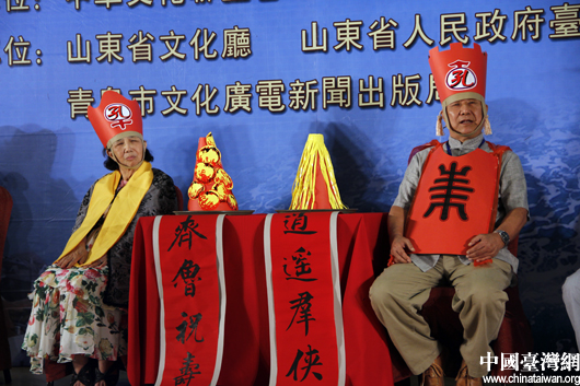 臺灣嘉賓表演“逍遙群俠齊魯賀壽”喜劇,惹人捧腹。(中國臺灣網 芮益芳)