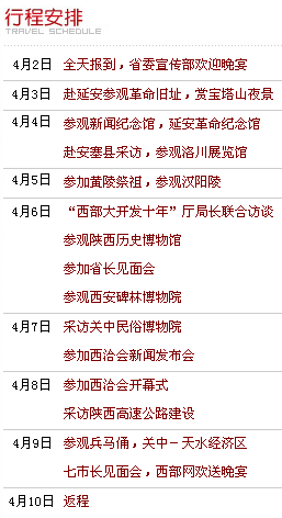 第四屆中國網(wǎng)絡媒體陜西行主要行程