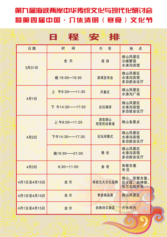 第四屆清明寒食節日程安排