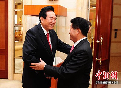 9月25日下午,海峽兩岸關系協會會長陳云林(左)在北京會見了鄭銘坤先生率領的臺灣媽祖聯誼會訪問團一行。中新社記者 侯宇 攝