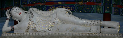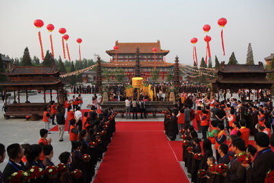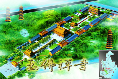 天津玉佛禪寺前身為“法藏寺”,始建于周隋之間(約公元557年~581年)毀于清末民初。2003年8月,天津市宗教局批準重建該寺,更名為玉佛禪寺。寺院占地寬廣,院內翠柏蒼松,枝葉茂密,綠蔭昂然。寺院主體中軸對稱、回廊連接、翹角飛檐、朱漆彩繪。延中軸線依次建有山門、天王殿、大雄寶殿、臥佛殿等;兩側為鐘鼓樓、文殊、普賢、觀音、地藏四大菩薩殿等。值得一提的是,寺院全堂佛像均為緬甸玉石雕刻而成,且尊尊佛像雕刻精美,姿態(tài)威武,氣魄雄偉,比例勻稱,盡顯神通靈感,別具特色。