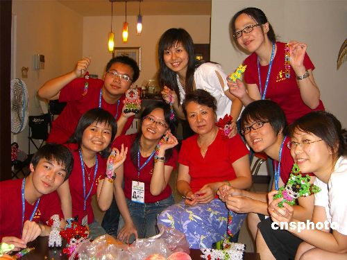 見到臺灣學生們特別喜歡,劉媽媽干脆拿出珠子和細線,手把手地教他們基本的穿珠方法,又把自己花了十幾個小時制作的五個福娃贈送給了臺灣學生們。孩子們對這別致而珍貴的禮物都愛不釋手。