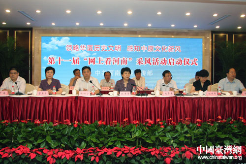 中國臺灣網5月28日鄭州消息 28日上午,第十一屆“網上看河南”采風活動在鄭州啟動。河南省委常委、宣傳部部長趙素萍、河南省發展改革委員會主任張維寧、河南省廣電局局長趙景春、河南省文化廳廳長楊麗萍等出席啟動儀式。