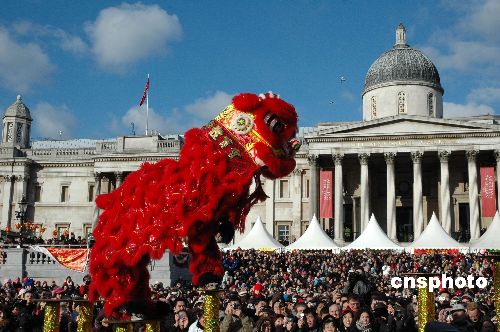 二月一日是農歷正月初七,也是個星期日。特拉法加廣場變成歡樂的海洋,大紅燈籠高懸在廣場周圍,象征吉祥如意的中國特色的飾品令廣場洋溢著“年”味。