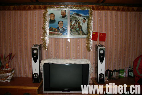 記者看到客廳的墻上掛著國家領(lǐng)導(dǎo)人的照片,問多布吉為什么掛的不是佛祖的像時,多布吉說:“解放時,我13歲,是個放牛娃,農(nóng)奴,連鞋都沒有,光著腳。現(xiàn)在我家里每年收入一萬多,孫女兒在山南學(xué)跳舞,孫子在拉薩畫唐卡,我也沒啥力氣干活了,閑了就和村里的人擲骰子玩兒。今年,我還去拉薩看了奧運會火炬?zhèn)鬟f,真好看,高興著哪!這當然要感謝國家領(lǐng)導(dǎo)人。”