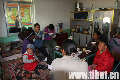 現(xiàn)在家里養(yǎng)著三四頭牛,在山坡上還有6畝地,種著青稞和麥子。自己只是放放牛,地都包給來西藏打工的漢族人種了。每年產(chǎn)的糧食,大部分都是自己吃,肉、菜可以到不遠的集上去買。生活上非常方便,生了病可以到不遠處的衛(wèi)生院去看,一般的普通病是免費的,有了大病,國家給報60%。