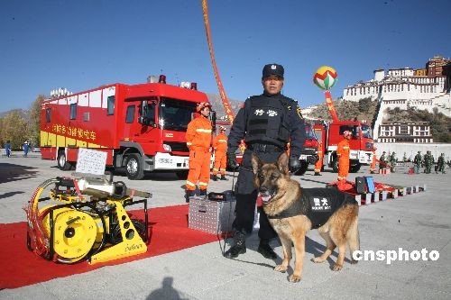 11月9日,上千“西藏消防志愿者”在拉薩市布達拉宮廣場舉行宣誓儀式。當日,西藏公安消防總隊亦在此展示了專業(yè)救援隊伍素質(zhì)和各種先進技術(shù)設(shè)備。西藏是中國消防、救援難度最大省份,文物、森林消防點多線長,地震、雪災(zāi)多發(fā),山高路險,救援困難,此舉旨在構(gòu)建全民消防安全防控體系。