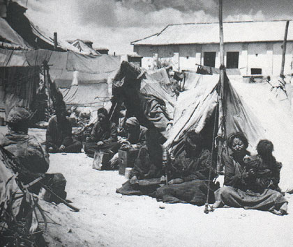 無(wú)力支付差祖和高利貸的農(nóng)奴逃進(jìn)拉薩,形成一處處乞丐村,這是拉薩魯普乞丐村一角。新華社資料