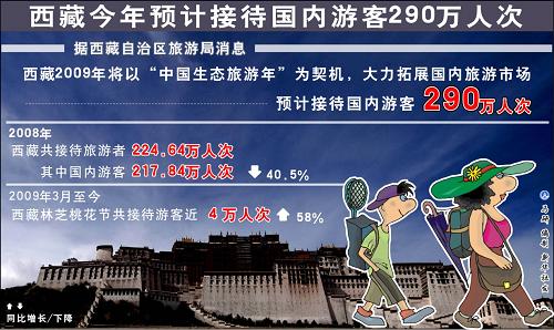 目前,西藏各地旅游景區已做好了迎接旅游旺季的各項準備。據估計,2009年西藏接待中外游客將突破300萬人次,旅游總收入達到或超過34.6億元。同時,今年自治區各旅游景區景點的門票基本維持去年的價格不變,有的地區還對西藏人游西藏的門票實行了優惠價格。(徐丹、朱磊)