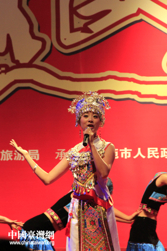 恩施市山民歌匯25日晚間上演,圖為臺灣少數民族代表登臺表演。(中國臺灣網 楊麗 攝)