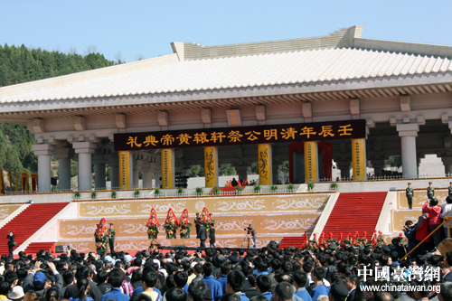 4月4日上午,壬辰年(2012)清明公祭軒轅黃帝典禮在陜西黃帝陵隆重舉行。(中國臺灣網(wǎng) 楊麗 攝)