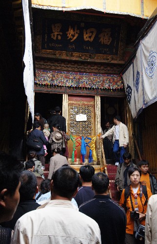 信徒和游客們?cè)谟?300多年歷史的布達(dá)拉宮觀音殿朝拜參觀(2006年6月9日攝)。新華社記者 格桑達(dá)瓦 攝