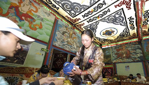 資料圖片:游客在一間藏餐館里用餐(7月27日攝)。 新華社記者 普布扎西 攝