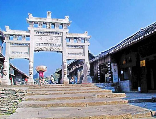 古鎮(zhèn)方圓3平方公里,鎮(zhèn)容布局沿襲明、清格局,至今仍存完好的朝門(mén)、腰門(mén)以及陳舊古老的石柜臺(tái)和木柜臺(tái)。鎮(zhèn)內(nèi)祠宇林立,建有九寺、八廟、五閣、三洞、二祠、一宮、一院,共30多座廟宇祠堂,這批古建筑氣勢(shì)雄偉、雕梁畫(huà)棟,工藝精妙絕倫,令人嘆為觀止。其中不少雖年久失修,大部分仍風(fēng)韻猶存,頗具觀賞價(jià)值。
