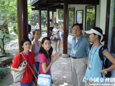 副團長諸大明正在和臺灣學子交流參觀書院心得