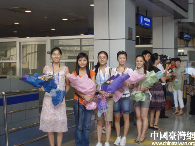 圖為機場等待迎接臺灣賓客的鮮花隊。