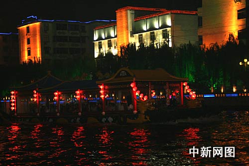 晚上9時許,記者在運河邊看到,古運河的游船忙得不可開交,許多游客排著隊等著感受“船在水中走,人在畫中游”的勝景。
