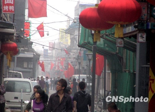 十月初的黃金周假期, 北京前門附近的胡同呈現老京城新面貌。 中新社發 賈國榮 攝