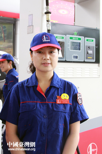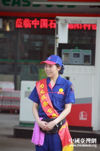綿陽科創園加油站,員工微笑送別車輛離開。(中國臺灣網 楊麗 攝)