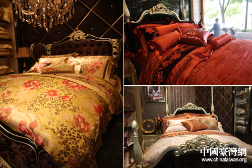 絲綢之路集團(tuán)展出的部分精美家紡類(lèi)絲綢產(chǎn)品(中國(guó)臺(tái)灣網(wǎng) 李典典攝)