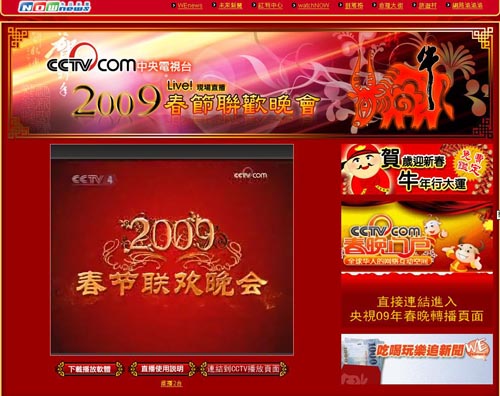 中國臺(tái)灣網(wǎng)1月25日消息 臺(tái)灣多家媒體在除夕夜對中央電視臺(tái)2009年春節(jié)聯(lián)歡晚會(huì)進(jìn)行了網(wǎng)上直播,兩岸同胞共賞春晚,歡度春節(jié)喜迎牛年。