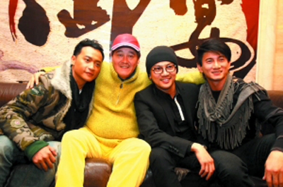 趙本山(左二)和小虎隊(duì)成員陳志朋、蘇有朋、吳奇隆親密合照。