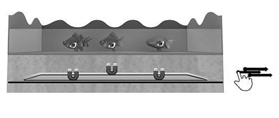 魚(yú)體內(nèi)有鐵塊,魔術(shù)師通過(guò)控制水下的磁鐵來(lái)指揮魚(yú)的行進(jìn)。