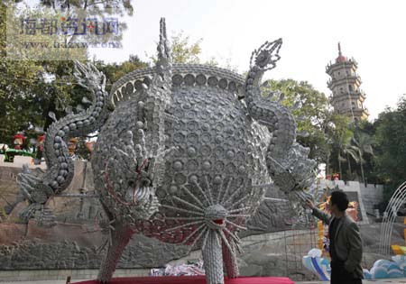 焰火首次在閩江中心順流燃放,相當一部分曾在北京奧運會開幕式上亮 相的萬朵禮花將點亮閩江夜空;66688個玻璃瓶扎成的“麒麟獻瑞”玻璃瓶燈組惟妙惟肖;近3萬件景德鎮(zhèn)瓷器捆扎而成的“盛世太平鼎”陶瓷燈,氣勢磅礴……第七屆“兩馬同春鬧元宵”將于正月十四晚,在福州馬尾江濱東大道馬江渡廣場舉行開幕式,當晚2.5萬發(fā)焰火將持續(xù)燃放40分鐘。昨日,記者提前往馬尾探訪今年大型燈會的亮點。