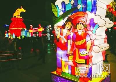 人海,燈廊。背襯著流光溢彩的廈門夜景,徐來的湖風中,人們在瑰麗的彩燈前展顏歡笑、合影留念,感受新春佳節的喜慶氣氛。燈會以“輝煌30年”為主題,突出展示海峽兩岸經濟文化交流成果,通過現代科技與傳統燈藝的完美結合,呈現出一派“火樹銀花不夜天,花燈璀璨慶和諧”的瑰麗景象。正如副市長裴金佳在致辭中所說,燈會集中展示了廈門改革開放30年來,全市上下一心,貫徹落實科學發展觀,搶抓機遇,開拓奮進,在經濟社會建設發展中取得的豐碩成果,表達了全市人民繼續吹響時代的號角、決心把廈門建設得更加美好的堅定信念和歡慶盛世、歌頌憧憬美好幸福生活的喜悅心情,預示著廈門在新的一年里,經濟社會各項事業發展必將“牛氣沖天”。
