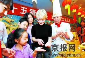 2月7日,來自加拿大的安娜女士(前右二)和中國朋友一起在學包湯圓。