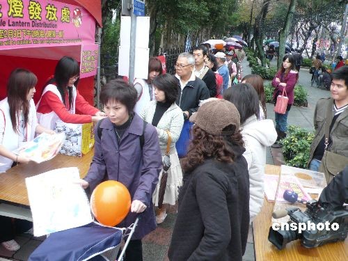 2月6日,元宵節將至,臺北市向市民免費發放元宵節小提燈。市民只要捐兩張發票,就可獲得一組牛年小提燈,民眾踴躍領取,排隊長達數百米。 中新社發 路梅 攝